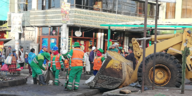 Participarán 3 cisternas, y más de 20 obreros agrupados en varias cuadrillas para limpiar, baldear y desinfectar la vía pública afectada por la basura generada por ambulantes y mercados del lugar.