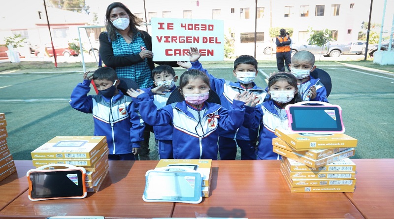 En una ceremonia, el Gobierno Regional de Arequipa entregó los aparatos tecnológicos a escolares de 29 instituciones educativas, ubicadas en zonas lejanas y de escasos recursos económicos.
