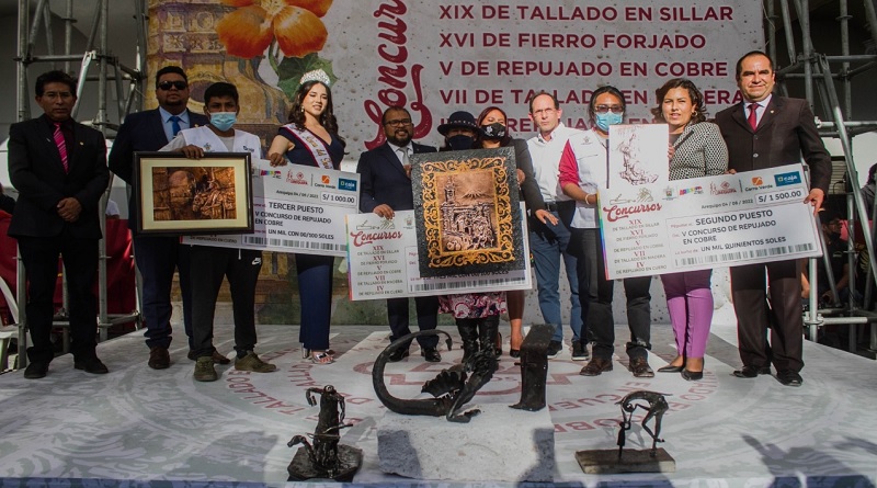 Alrededor de las 15:00 horas de este jueves 04 de agosto, se realizó la premiación de los concursos artesanales: XIX tallado en sillar, XVI de fierro forjado, V de repujado en cobre, VII de tallado de madera y IV repujado en cuero.
