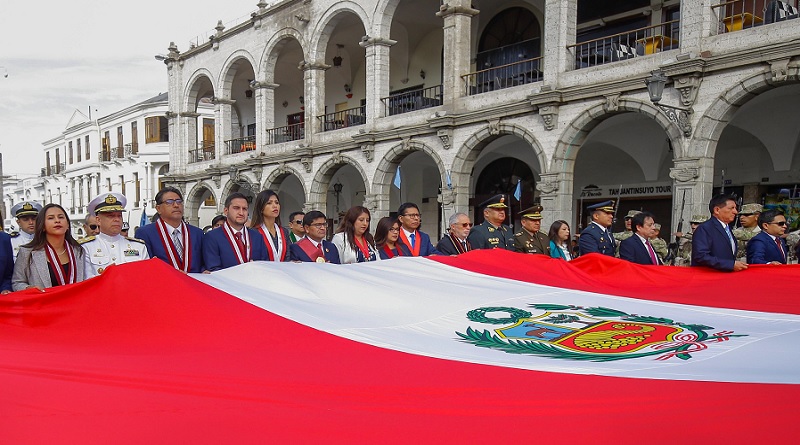Con el Paseo de la Bandera y el izamiento del Pabellón Nacional en la Plaza Mayor de la ciudad, el Gobierno Regional de Arequipa, celebró su XXXV aniversario de creación institucional.