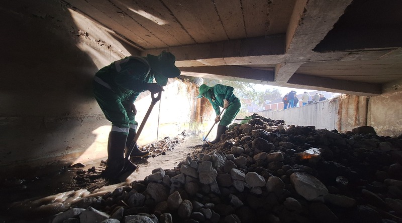 Durante el recorrido de fiscalización se inspeccionó el puente Munaypacha, donde se verifico que se viene realizando trabajos de limpieza de bajo del puente para prevenir desbordes que puedan afectar a las zonas aledañas.
