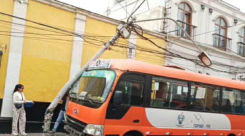 Momentos de pánico vivieron los pasajeros de una cúster de transporte urbano cuando la unidad, con placa X3B-914, se estrelló violentamente contra un poste de alumbrado público en la cuarta cuadra de la calle La Merced, en el Centro Histórico de Arequipa.