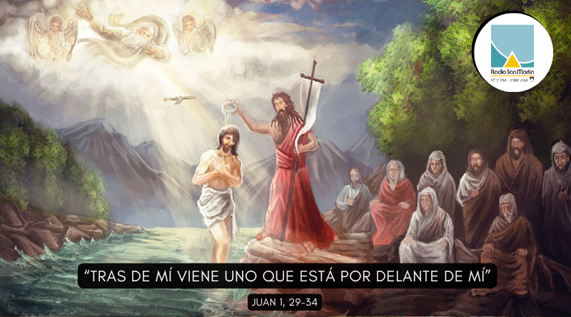 «Este es el Cordero de Dios, que quita el pecado del mundo. Este es aquel de quien yo dije: “Tras de mí viene un hombre que está por delante de mí, porque existía antes que yo”. Yo no lo conocía, pero he salido a bautizar con agua, para que sea manifestado a Israel».