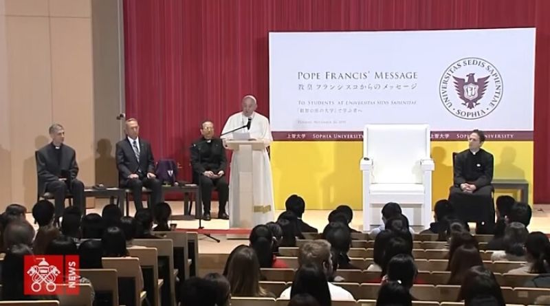 La Sophia University ha estado siempre marcada por una identidad humanista, cristiana e internacional. Desde su fundación, la Universidad se ha enriquecido con la presencia de profesores de varios países, incluso a veces de países en conflicto entre sí. Sin embargo, afirmó Francisco, todos estaban unidos por el deseo de dar lo mejor a los jóvenes de Japón.