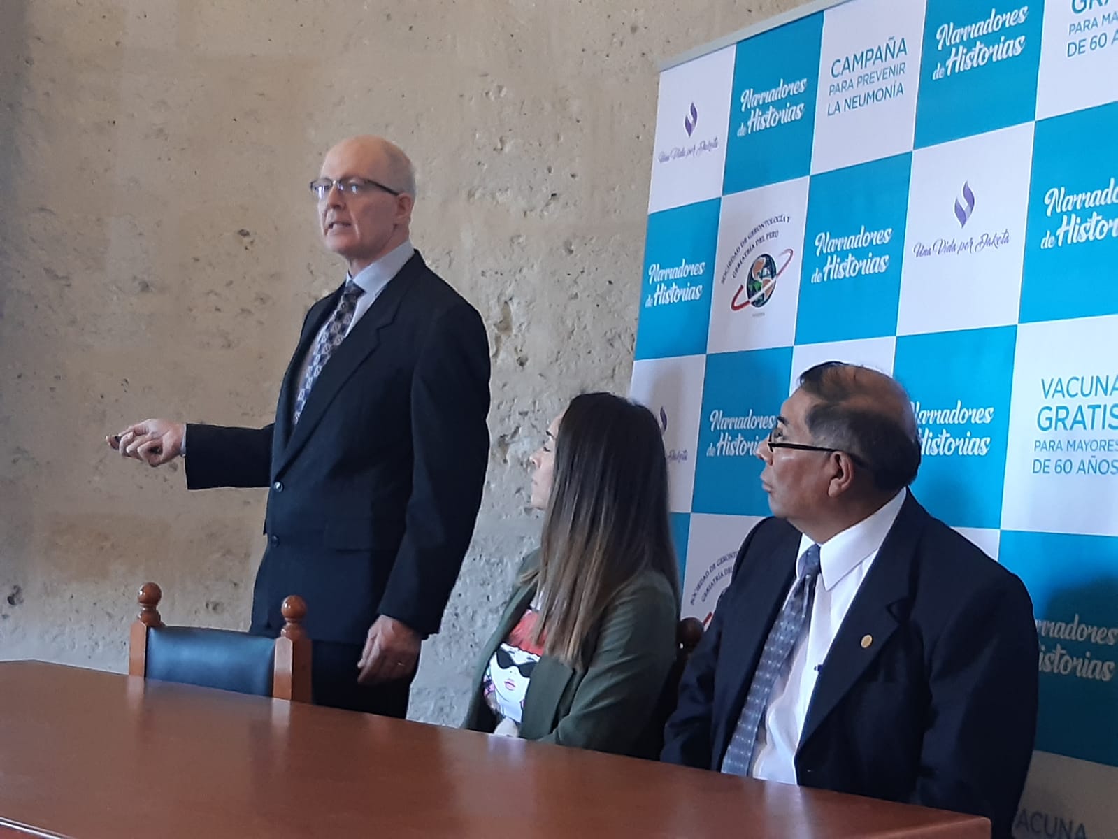 Ante la alta incidencia de caso de neumonía en la región Arequipa, la ONG “Una Vida por Dakota”, la Dirección Regional de Salud (GERESA) y la Sociedad de Gerontología y Geriatría del Perú, lanzaron la campaña “Narradores de Historias”, iniciativa que busca concientizar a la población para que los adultos mayores se vacunen de manera gratuita contra el neumococo, causante de la neumonía y otros males infecciosos y respiratorios.