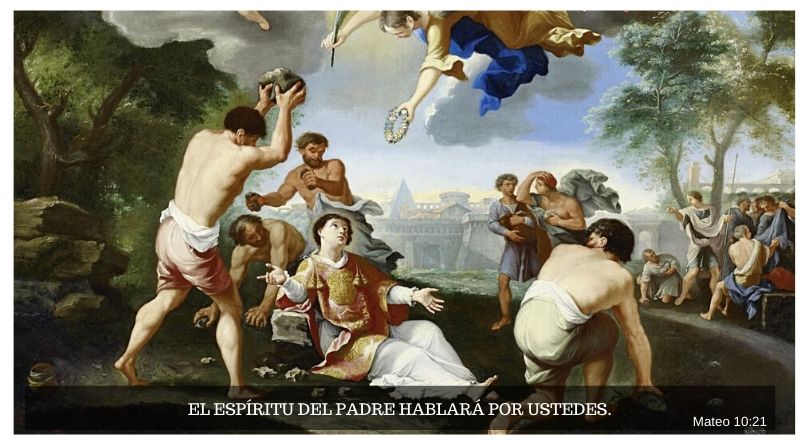 Hch 6,8-10; 7,54-60: Veo el cielo abierto. Salmo 30: A tus manos, Señor, encomiendo mi espíritu. Mt 10,17-22: El Espíritu del Padre hablará por ustedes.