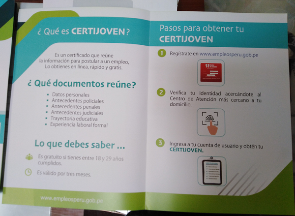 Los jóvenes de 18 a 29 años de edad que busquen postular a un empleo, podrán acceder al Certijoven – un documento que reúne información sobre datos personales, antecedentes policiales, penales, judiciales; trayectoria educativa y experiencia laboral formal.