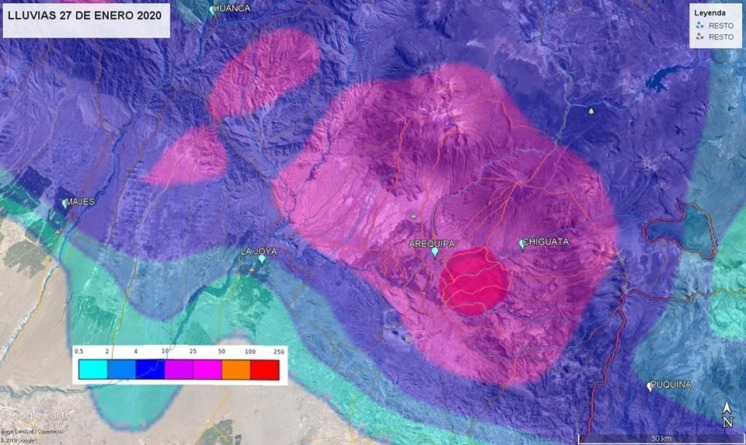 Según el informe emitido por la entidad, se espera presencia de lluvias moderadas en cuencas medias de las provincias de Castilla y Caylloma y de mayor intensidad en la zona media de la provincia de Arequipa ZONA QUE DEBE SER PRIORIZADA YA QUE PUEDE SUPERAR LOS 25mm.