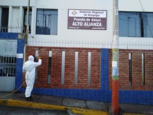 Cumpliendo con los protocolos de prevención y contención del COVID- 19, de acuerdo a las recomendaciones de las autoridades sanitarias de nuestro país, en la víspera fueron intervenidas las postas de: Alto alianza, Upis Paisajista, Chilpinilla, Daniel Alcides Carrión, Caminos del Inca, y el Centro de salud Javier Llosa García, así como la Central de Seguridad Ciudadana, el almacén de la municipalidad y las unidades móviles.