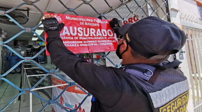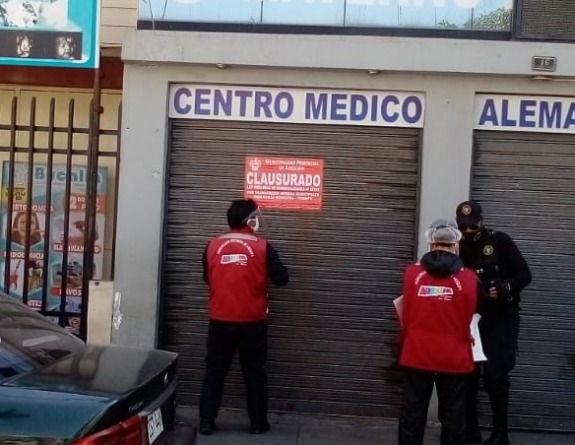 Durante la intervención, se inspeccionaron 57 locales entre farmacias, policlínicos, laboratorios; de los cuáles 15 de ellos fueron clausurados de manera inmediata porque no contaban con la vigencia del permiso de defensa civil, licencia de funcionamiento y el plan de vigilancia contra COVID-19.