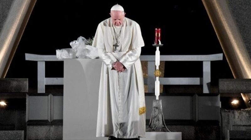 Nunca ha estado más claro que, para que la paz florezca, es necesario que todos los pueblos depongan las armas de guerra, y especialmente las más poderosas y destructivas: las armas nucleares que pueden paralizar y destruir ciudades enteras, países enteros. Repito lo que dije en Hiroshima el año pasado: «El uso de la energía atómica con fines bélicos es inmoral, así como la posesión de armas nucleares es inmoral» (Discurso en el Memorial de la Paz, 24 de noviembre de 2019).