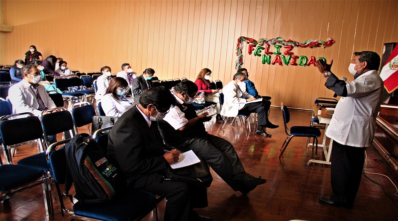 Las autoridades de salud encabezados por el Comando Regional COVID, se reunieron en el auditorio del Hospital Carlos Alberto Seguín Escobedo de EsSalud para evaluar el avance de los contagios del coronavirus en Arequipa.