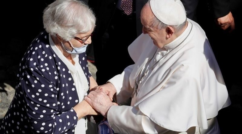 El beso del Papa en el brazo de Lidia, superviviente de Auschwitz