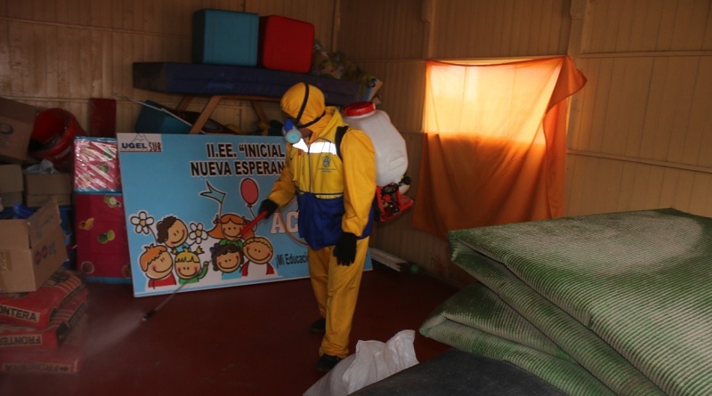 Realizan desinfección de ambientes en 41 Instituciones Educativas de Alto Selva Alegre