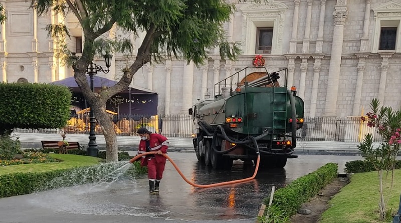 Asimismo trascendió que comuna provincial a través del Departamento de limpieza pública de la Sub Gerencia de Saneamiento y Salubridad y departamento de Parques y Jardines realizó los trabajos de limpieza y desinfección de calles del centro histórico.