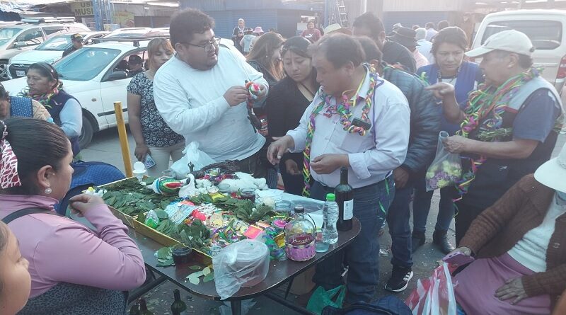 Con banda de música, serpentina, confeti, bastante espuma y con pago a la tierra se realizó el tradicional recorrido por los carnavales en la feria El Altiplano, donde participaron los 1500 comerciantes y los clientes, los mismos que bailaron y disfrutaron de la actividad con mucha alegría.