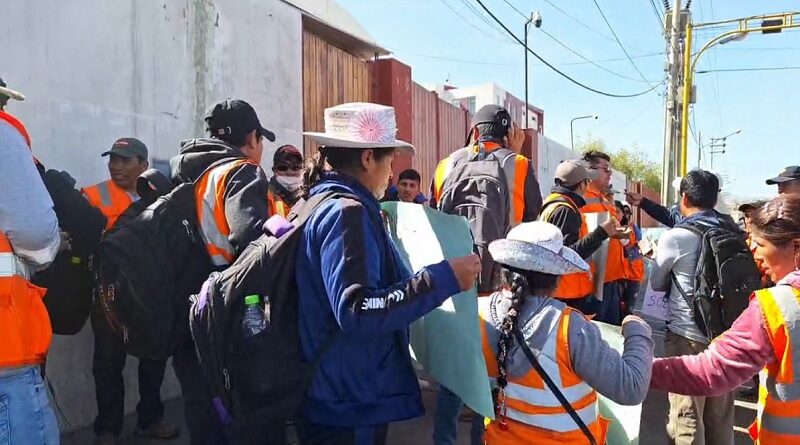Los trabajadores de la obra vial Vizcachani-Caylloma realizaron una protesta en los exteriores del gobierno regional de Arequipa por paralización de la obra causada por la falta de maquinaria y materiales, exigiendo al gobernador regional Roel Sánchez que se agilicen los procesos correspondientes.