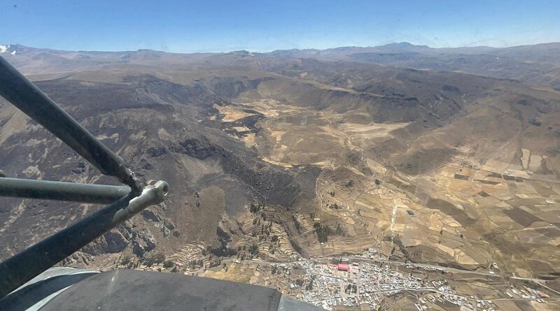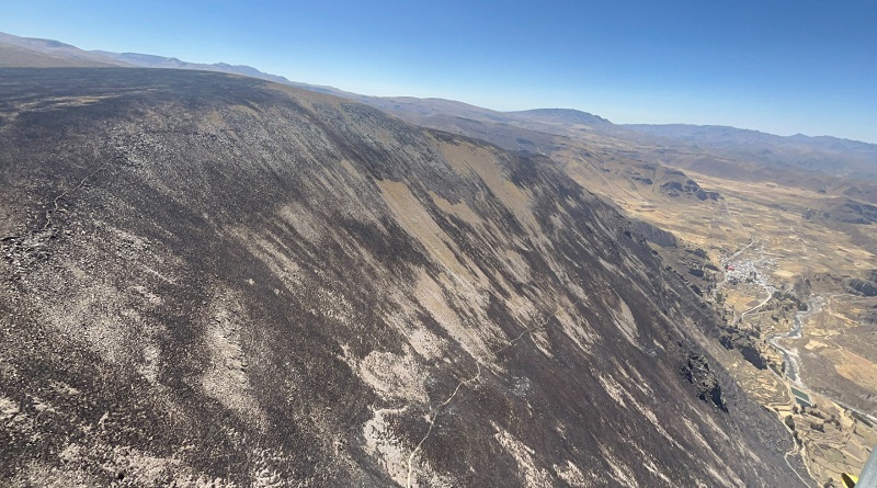Con sistema Bambi Bucket sofocarán incendio en Tuti provincia de Caylloma