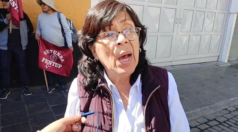 Un grupo de trabajadores del SUTUNSA realizaron un plantón en los exteriores del rectorado de la Universidad Nacional de San Agustín para exigir el cumplimiento del convenio colectivo 2023.