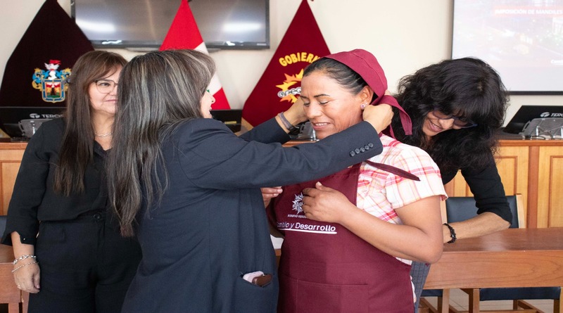 En el acto de imposición de los mandiles estuvieron presentes, los gerentes regionales de Desarrollo e Inclusión Social, María Antonieta Torres Espejo y el de la Producción, David Vela Quico; y la presidenta del Comité de Damas Voluntarias del GORE Arequipa, Luz Marina Zeballos Patrón.