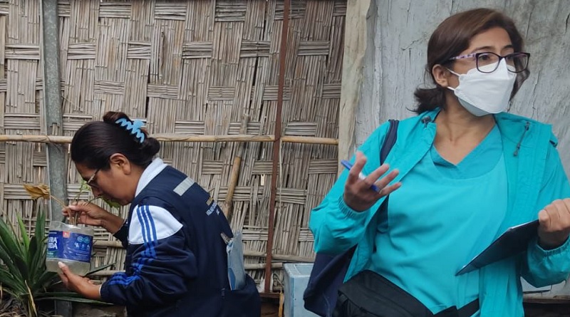 Por último, el personal de salud realiza visitas a las viviendas aledañas al caso positivo, para determinar las zonas donde está presente el mosquito y delimitar el área a ser fumigada en los próximos días.