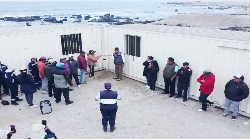 Se intensifica el control y vigilancia de la extracción ilegal e informal de los recursos erizo rojo y macroalgas varadas con la instalación de containers multipropósito en la zona de Yanyarina de la región Arequipa, distrito Lomas, provincia de Caravelí.