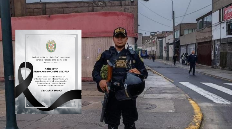 La Policía Nacional del Perú expresó su pésame ante el fallecimiento de un policía en la región Ayacucho. Como se lee en su publicación de X, antes Twitter, el Alférez PNP Marco Antonio Cosme Vergara dejó de existir tras un enfrentamiento contra una organización criminal en el territorio andino.