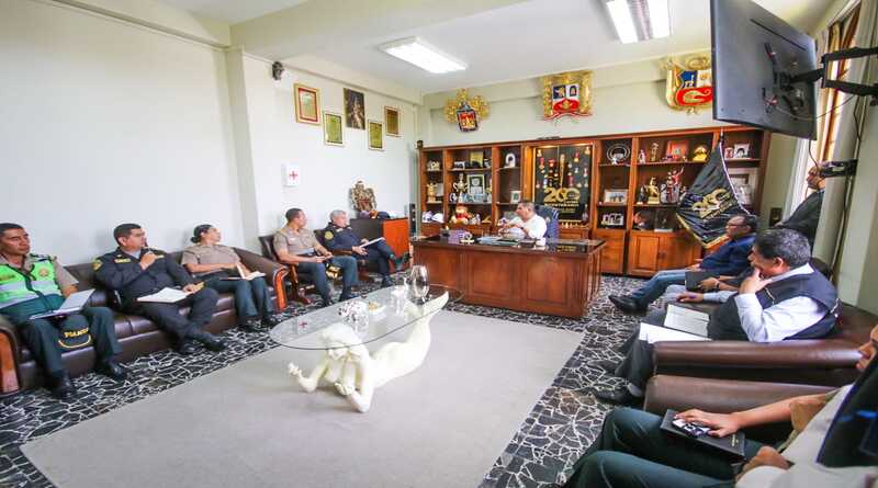 El alcalde de Cayma Juan Carlos Linares, se reunión con el Jefe de la Región Policial Arequipa, General PNP, Olger Benavides Ponce de León, el Coronel PNP Giulianno Arguedas Pérez, jefe de la División de Orden Público y Seguridad Arequipa, y los comisarios de las distintas dependencias policiales del distrito, con el objetivo de reforzar la seguridad ciudadana.