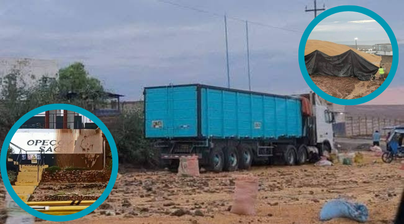 Huayco ingresa por peaje de Matarani, derrumba almacén de trigo y maíz que bloquea parte de la vía
