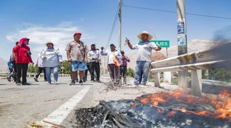Los agricultores de los distritos de Uraca, Aplao, Huancarqui, Tipán, Viraco, Machaguay, Andagua, Ayo, Orcopampa, Chilcaymarca y Uñón tomaron el puente Punta Colorada, exigiendo la declaratoria de emergencia a las autoridades para poder resarcir la afectación a los terrenos de cultivo.