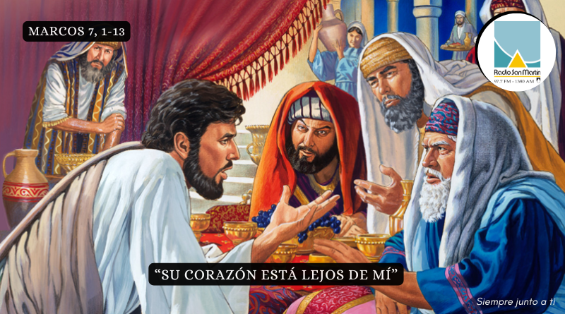 «Bien profetizó Isaías de vosotros, hipócritas, como está escrito: «Este pueblo me honra con los labios, pero su corazón está lejos de mí. El culto que me dan está vacío, porque la doctrina que enseñan son preceptos humanos». Dejáis a un lado el mandamiento de Dios para aferraros a la tradición de los hombres».