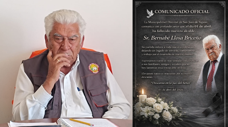 El distrito de San Juan de Siguas atraviesa un momento de duelo tras confirmarse el fallecimiento de su alcalde, Bernabé Llosa Briceño, quien hasta hace pocos días cumplía funciones con normalidad. Su deceso se produjo luego de sufrir una complicación de salud tras participar en una actividad oficial en La Joya.